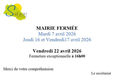 Actualités Chasse aux œufs de 1 à 6 ans Arrêté portant reconnaissance de l’état de catastrophe naturelle Reconnaissance au titre de l’ISN (Indemnisation fondée sur la solidarité nationale) suite à la sécheresse de mai à août 2025 INSEE – Enquête statistique Emploi du temps 2025-2026 Arrêté préfectoral du 25 juin 2025 autorisant des représentants du CBNSA à pénétrer dans des propriétés privées jusqu’au 31 décembre 2026 Recensement obligatoire des jeunes de 16 ans Voir toutes les actualités Manifestations 13 Mar 2026 - 23 Avr 2026 Du 17 au 19 juillet 2026 – Réservation bientôt disponible 02 - 22 Avr 2026 Fermeture Mairie Tous les événements