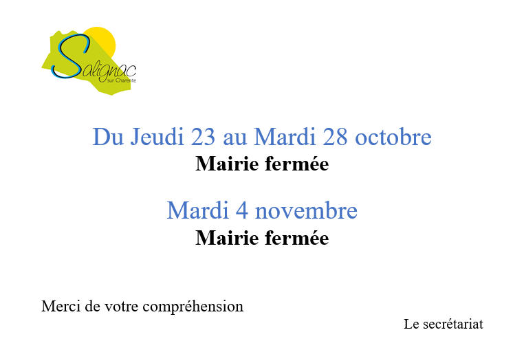 fermeture mairie + Ajouter à mon Agenda Google + iCal / Outlook export L'événement est en cours. Date 13 Oct 2025 - 04 Nov 2025 En cours... Heure 08:00 - 18:00 Partagez cet événement