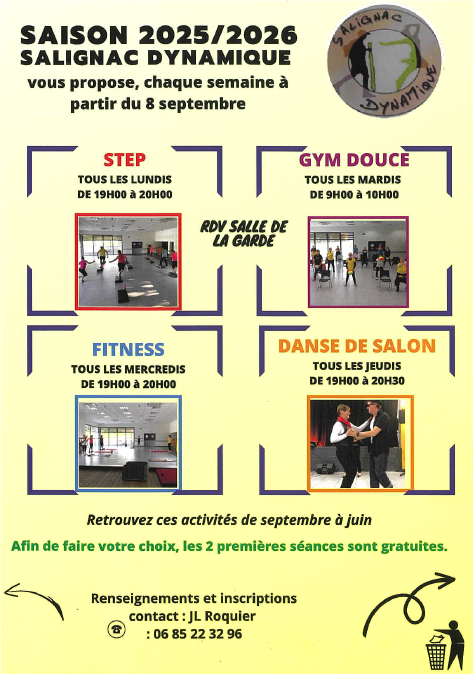 BON A SAVOIR Vous pouvez venir nous rejoindre dans une ou plusieurs activités de votre choix ! Les inscriptions restent ouvertes toute l’année avec une tarification appropriée. RENSEIGNEMENTS : Jean-Louis ROQUIER 06.85.22.32.96